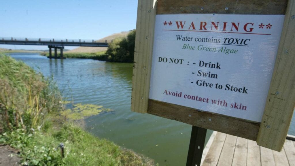 El agua en este punto del río se volvió tóxica para la vida silvestre, y los animales que la bebían se enfermaban rápidamente y morían de forma terrible. El efecto de las toxinas microalgas, tanto en el medio ambiente marino como en el de agua dulce, ha aumentado su gravedad en los últimos años, y los episodios de envenenamiento se están volviendo más comunes y extendidos. Por ejemplo, en el medio oeste de los Estados Unidos, el consumo de agua contaminada ha provocado la muerte de miles de patos y gansos.