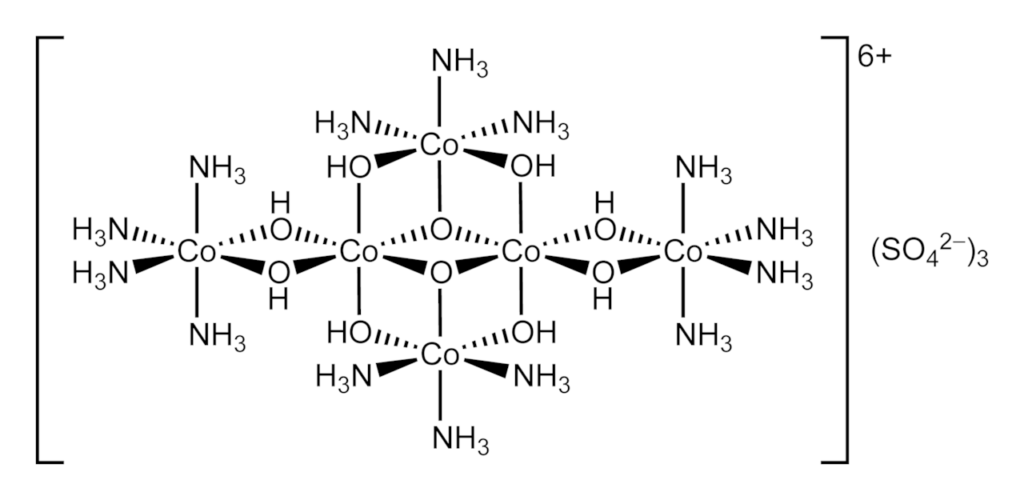 En ocho años, Werner y sus estudiantes habían resuelto otros 40 complejos. Sin embargo, debido a la opinión predominante de que la actividad óptica estaba íntegramente relacionada con los átomos C, Werner decidió que era necesario preparar un complejo completamente inorgánico (es decir, sin átomos C) para demostrar que «los compuestos inorgánicos libres de carbono también pueden existir como isómeros de imagen especular».
