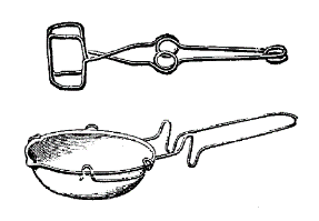 Un texto destacado de 1873 describía «tenazas de madera, hechas con dos trozos de madera de aproximadamente un pie de largo, articulados juntos en la parte trasera y conectados al mismo tiempo y mantenidos separados por un resorte deslizante de acero o latón, algo similar a los utilizados en ciertas tijeras de podar»