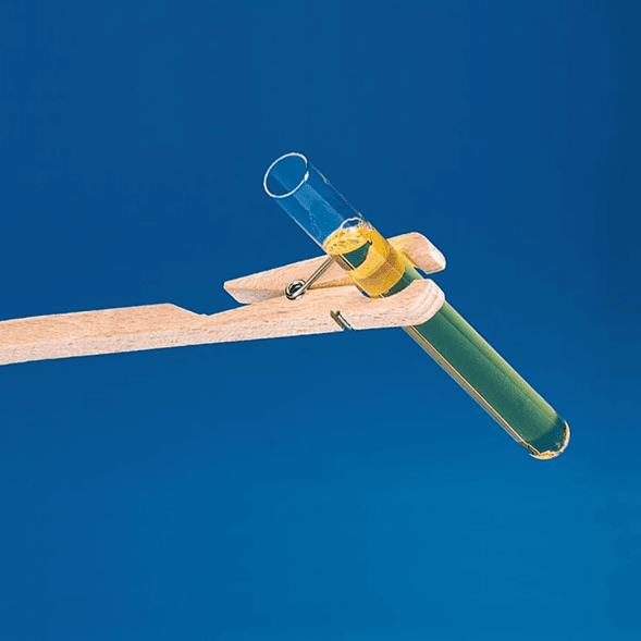 El propósito de una pinza para tubos de ensayo es sostener únicamente un tubo de ensayo, ya que no está diseñada para matraces u otros objetos más pesados. También se utiliza cuando se quiere quemar algo pequeño que no se puede sostener con la mano.