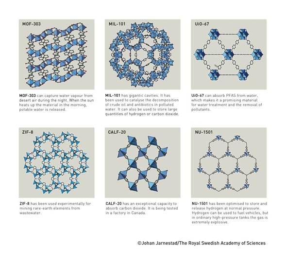 Algunos investigadores creen que las estructuras metal-orgánicas tienen un potencial tan enorme que serán el material del siglo XXI. El tiempo lo dirá, pero a través del desarrollo de las estructuras metal-orgánicas, Susumu Kitagawa, Richard Robson y Omar Yaghi han brindado a los químicos nuevas oportunidades para resolver algunos de los desafíos que enfrentamos. De este modo, han traído —como dice el testamento de Alfred Nobel— el mayor beneficio para la humanidad.
