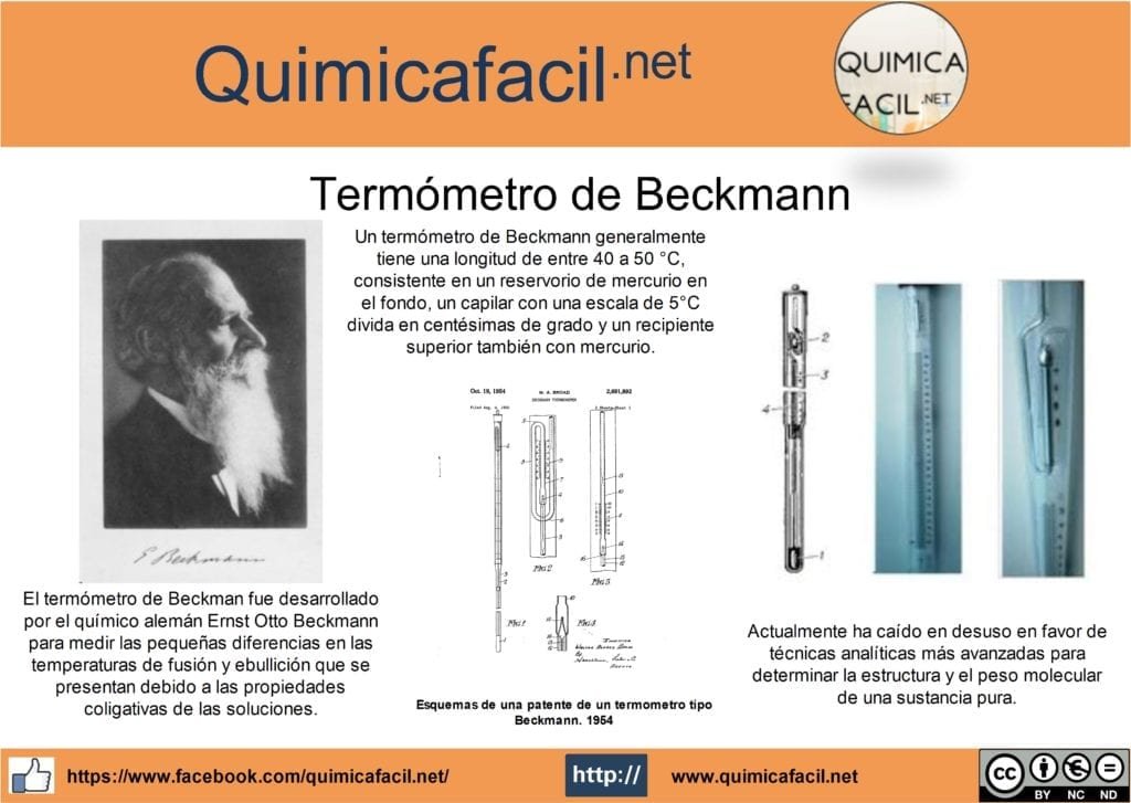El termómetro de Beckman fue desarrollado por el químico alemán Ernst Otto Beckmann para medir las pequeñas diferencias en las temperaturas de fusión y ebullición que se presentan debido a las propiedades coligativas de las soluciones.